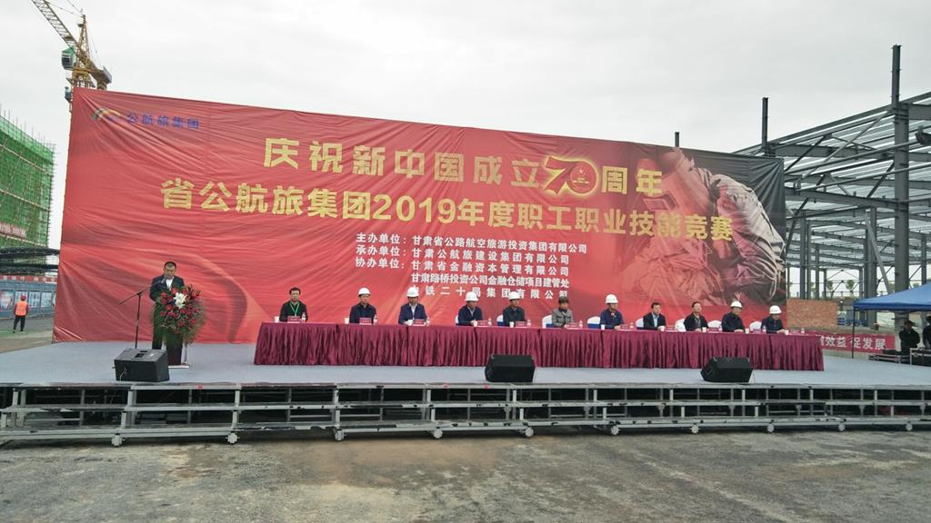 2019年9月18至19日,由省公航旅集團(tuán)有限公司主辦,甘肅公航旅建設(shè)集團(tuán)有限公司承辦,甘肅省金融資本管理有限公司、甘肅路橋投資公司金融倉儲項目建管處、中鐵二十局集團(tuán)有限公司協(xié)辦的“慶祝新中國成立70周年 省公航旅集團(tuán)2019年度職工職業(yè)技能競賽”在甘肅公航旅金融倉儲基地(一期)項目順利舉行。甘肅省總工會副主席張愛華、省公航旅集團(tuán)總工程師喬小兵出席了大賽并作致辭。本次大賽還邀請了省人社廳職業(yè)技能鑒定中心主任何元魁,省職工技術(shù)協(xié)會副理事長、辦公室主任、省組委會辦公室副主任張學(xué)會、工人日報駐甘肅記者站站長康勁等蒞臨指導(dǎo)。集團(tuán)公司相關(guān)部門、各子公司相關(guān)負(fù)責(zé)人、甘肅公航旅金融倉儲項目建管處相關(guān)工作人員等參加活動。