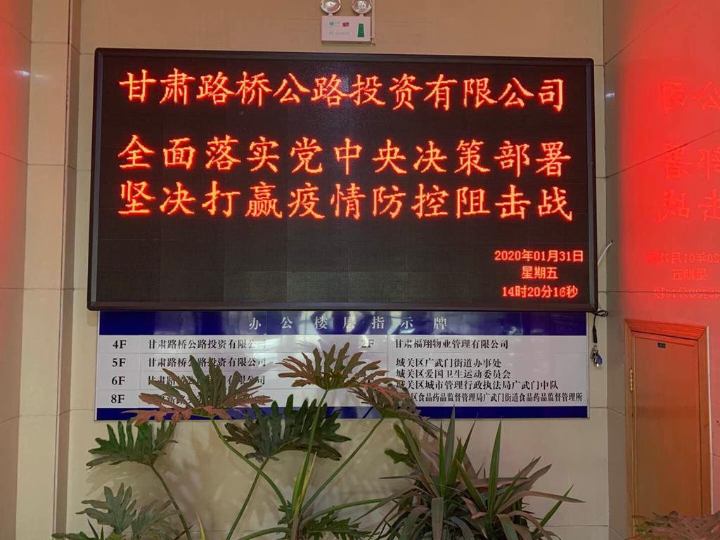 根據(jù)省政府、省交通運(yùn)輸廳及集團(tuán)關(guān)于做好新型冠狀病毒感染的肺炎疫情防控工作的各項(xiàng)要求,公司及時(shí)印發(fā)了《甘肅路橋公路投資有限公司新型冠狀病毒感染的肺炎疫情防控工作方案》,對(duì)公司機(jī)關(guān)及項(xiàng)目建設(shè)一線的疫情防控工作進(jìn)行了詳細(xì)部署;公司紀(jì)委印發(fā)了《關(guān)于在新型冠狀病毒感染的肺炎疫情防控工作中進(jìn)一步強(qiáng)化黨組織和黨員干部責(zé)任的通知》,及時(shí)轉(zhuǎn)發(fā)了集團(tuán)的各類文件精神,并通過企業(yè)微信、QQ群等各類社交軟件組織公司全體黨員、干部職工認(rèn)真學(xué)習(xí)領(lǐng)會(huì)文件精神,積極落實(shí)相關(guān)要求,對(duì)集團(tuán)及公司相關(guān)防控工作要進(jìn)行實(shí)時(shí)安排布置,科學(xué)判斷形勢(shì)、精準(zhǔn)把握疫情,統(tǒng)一領(lǐng)導(dǎo)、統(tǒng)一指揮、統(tǒng)一行動(dòng),各黨支部要堅(jiān)持守土有責(zé)攻堅(jiān)克難,充分發(fā)揮戰(zhàn)斗堡壘作用;全體黨員要堅(jiān)持奮勇當(dāng)先擔(dān)當(dāng)奉獻(xiàn),發(fā)揮好共產(chǎn)黨員的先鋒模范作用,強(qiáng)化責(zé)任意識(shí),全力做好疫情防控早發(fā)現(xiàn)、早報(bào)告、早隔離,切實(shí)保障好全體人員的安全健康,維護(hù)好項(xiàng)目建設(shè)的正常秩序。