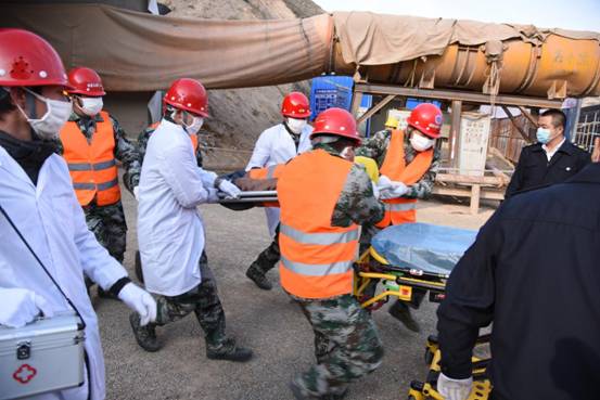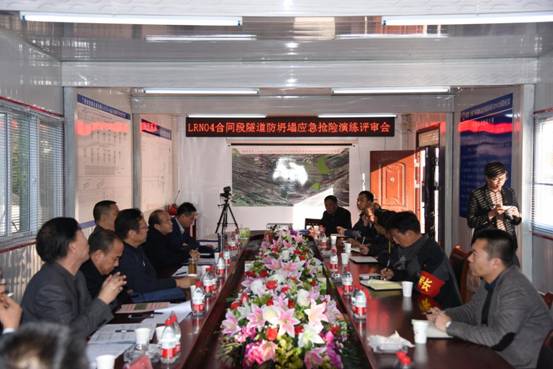 隨著演練總指揮一聲令下,應急演練正式開始,現場模擬隧道左洞洞內正在進行一次襯砌立架作業(yè)。安全員突然發(fā)現距掌子面20米處出現一襯拱頂開裂,掉塊、變形,并有擴大趨勢,馬上發(fā)出安全警報,有關應急預案立即啟動,LRN04標和項目辦成立應急救援領導小組,按照已制定的相關預案,緊張有序的開展救援工作。在各應急救援小組通力配合下,被困人員安全撤離,突發(fā)事件得到圓滿解決。