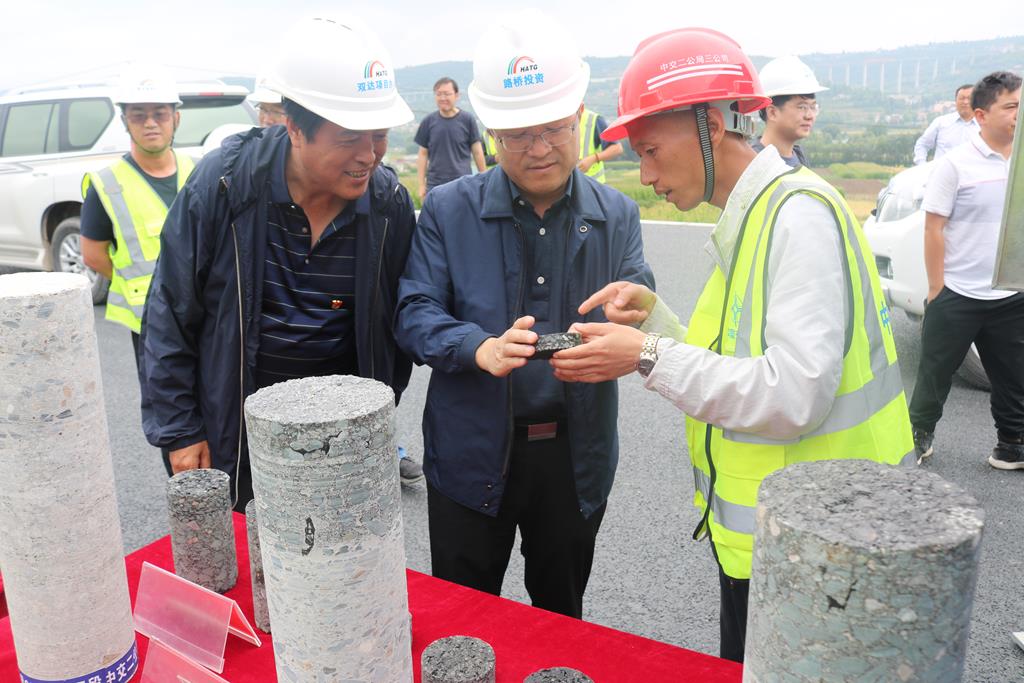 王曉鐘董事長(zhǎng)一行深入施工現(xiàn)場(chǎng),對(duì)三個(gè)項(xiàng)目的路基路面進(jìn)行了實(shí)地查看,詳細(xì)了解了項(xiàng)目施工創(chuàng)新以及品質(zhì)工程示范創(chuàng)建工作,聽(tīng)取了項(xiàng)目建設(shè)進(jìn)展、質(zhì)量、安全、管理等方面的工作匯報(bào)。