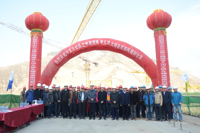 2016年11月17日,由中交第三公路工程局承建的蘭州南繞城LRN12合同段寺兒溝大橋左幅中跨順利合攏,并舉行了簡(jiǎn)短的合攏儀式。中國(guó)交通建設(shè)集團(tuán)路橋交通事業(yè)部總工李宗平,中交三公局總工于根社和蘭州南繞城項(xiàng)目主要負(fù)責(zé)人及參建單位代表出席了儀式。