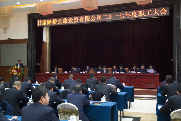 2017年2月21日上午,甘肅路橋公路投資有限公司召開(kāi)了職工大會(huì)。大會(huì)應(yīng)到145人,實(shí)到117人。會(huì)議聽(tīng)取了董事長(zhǎng)韓建民同志所做的《搶抓機(jī)遇、乘勢(shì)而上、努力開(kāi)創(chuàng)公司工作新局面 》的工作報(bào)告;聽(tīng)取了黨委副書(shū)記雷鵬海同志所做的《立足實(shí)際、主動(dòng)作為、在助推公司改革發(fā)展中書(shū)寫(xiě)新篇章》的工會(huì)工作報(bào)告;聽(tīng)取了財(cái)務(wù)總監(jiān)張文剛同志所做的財(cái)務(wù)工作報(bào)告。大會(huì)對(duì)2016年先進(jìn)集體和個(gè)人進(jìn)行了表彰;對(duì)三個(gè)報(bào)告進(jìn)行了表決,并對(duì)職工提案的落實(shí)與征集情況進(jìn)行了通報(bào)。