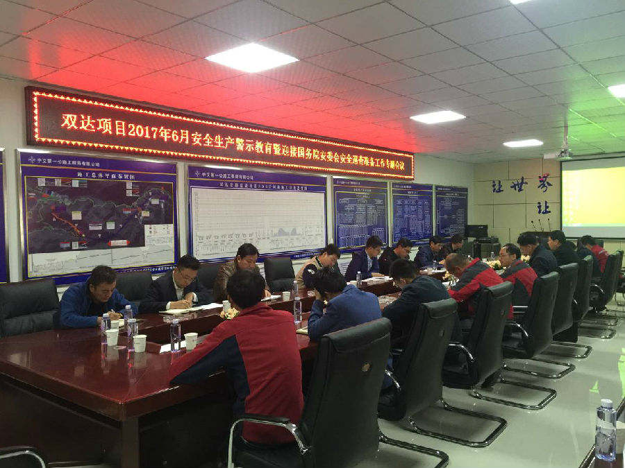 為進(jìn)一步強(qiáng)化安全基礎(chǔ)管理,落實(shí)省公航旅集團(tuán)對國務(wù)院安委會安全生產(chǎn)巡查相關(guān)工作的具體要求,靠實(shí)項(xiàng)目安全生產(chǎn)管理責(zé)任,提高全員安全生產(chǎn)意識,充分做好迎接國務(wù)院安委會安全巡查準(zhǔn)備工作,雙達(dá)項(xiàng)目辦于2017年6月7日晚組織雙達(dá)項(xiàng)目各施工、監(jiān)理單位召開了2017年6月安全生產(chǎn)警示教育暨迎接國務(wù)院安委會安全巡查準(zhǔn)備工作專題會議。