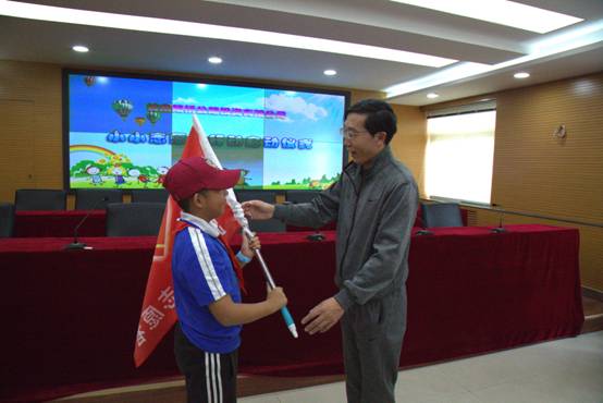 隨后,工作人員為“小小志愿者”授旗并頒發(fā)了志愿者證書。“小小志愿者”代表做了熱情洋溢的發(fā)言,他與大家分享了自己的志愿服務(wù)經(jīng)歷,號召各位“小小志愿者”要嚴(yán)格遵守《志愿者日常行為規(guī)范》,傳承、發(fā)揚(yáng)好志愿者服務(wù)精神。