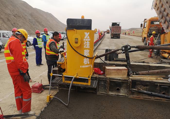此次路面底基層試驗(yàn)段鋪筑采用了一些先進(jìn)的機(jī)械設(shè)備及微小創(chuàng)新工藝。比如水穩(wěn)拌和站采用帶振動(dòng)的800型雙攪拌缸拌合樓,保證水穩(wěn)混合料的均勻性,減小離析,提高拌合質(zhì)量;水穩(wěn)攤鋪采用全幅攤鋪機(jī),有效提高路面平整度及整體性,防止出現(xiàn)雙機(jī)并排攤鋪時(shí)路面中部的縱向接縫;水穩(wěn)邊部采用自動(dòng)注漿機(jī)灌注水泥漿,輔以有效的邊部碾壓,保證邊部施工質(zhì)量,防止塌邊;壓路機(jī)全部安裝智能數(shù)顯防撞系統(tǒng),保證施工安全性等。以上的先進(jìn)施工工藝及設(shè)備有效保證了水穩(wěn)基層施工質(zhì)量,將在全項(xiàng)目范圍內(nèi)推廣使用。